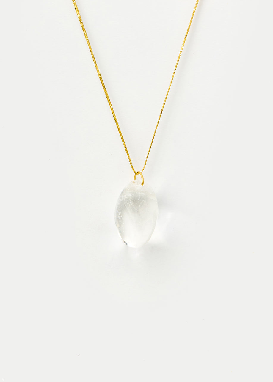 18kt Gold Drilled Tumbled Crystal Amulet on Cord