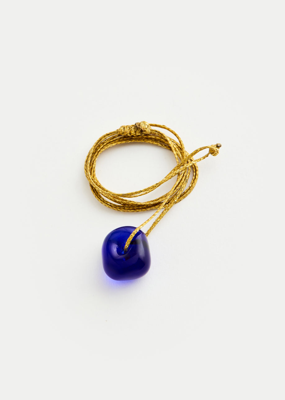 The collection ranges from single-bead pendants to full beaded bracelets and necklaces, with a twinkling of hand-blown glass earrings. Thick glass beads in tones of teal, amber, and rose were inspired by ancient stone beads that have been worn, handled, and loved for centuries, altering the shape of the bead over time. The Azaz collection feels both ancient and modern, pendants of sensual clusters of bean, seed and pod shapes, strings of uneven beads soft and comforting to the touch, bracelets like strings of worry beads, and earrings like coloured globules.
