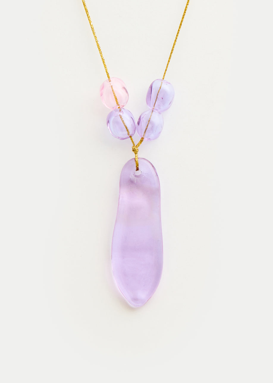 Azaz Pink & Purple Glass Beaded Necklace on Cord