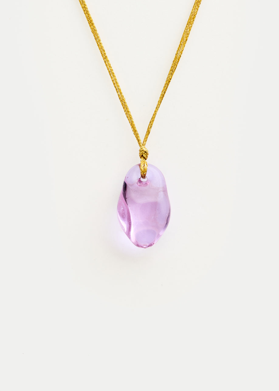 The collection ranges from single-bead pendants to full beaded bracelets and necklaces, with a twinkling of hand-blown glass earrings. Thick glass beads in tones of teal, amber, and rose were inspired by ancient stone beads that have been worn, handled, and loved for centuries, altering the shape of the bead over time. The Azaz collection feels both ancient and modern, pendants of sensual clusters of bean, seed and pod shapes, strings of uneven beads soft and comforting to the touch, bracelets like strings of worry beads, and earrings like coloured globules.