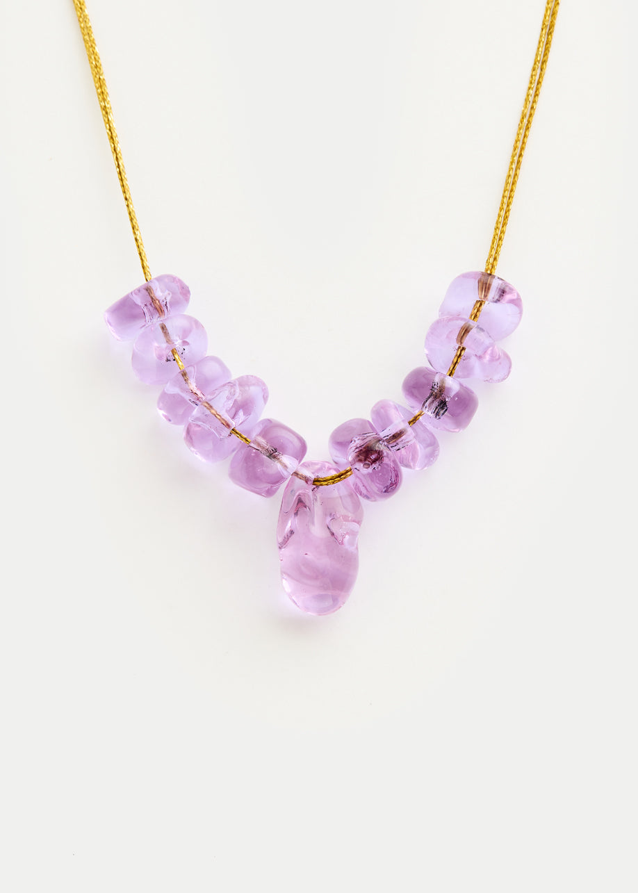Azaz Purple Glass Multi Beaded Necklace on Cord