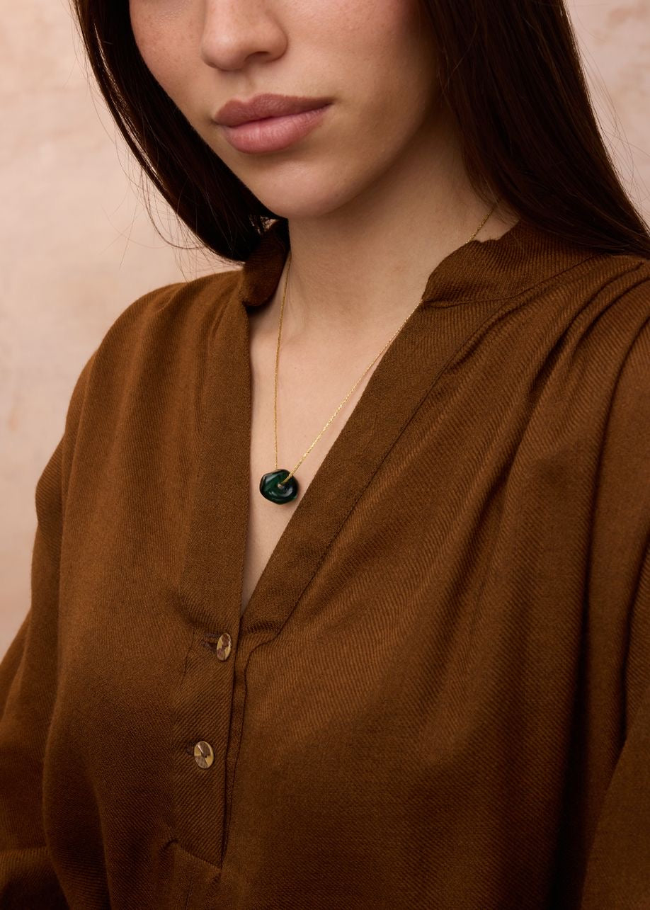 This necklace is strung on an adjustable cord, allowing it to be adjusted to any desired length.