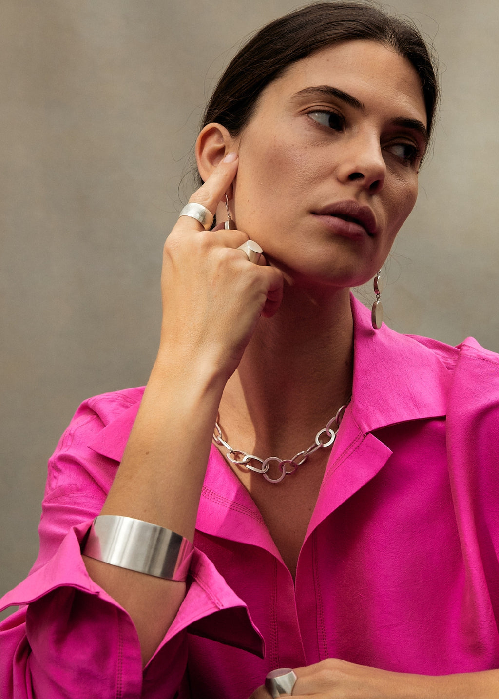 Kushan is a collection of softly muted, low-polished, organic, hand-formed silver discs. Inspired by the ancient Kushan Empire, which once flourished across what is now northern Afghanistan, an area rich in art and culture.